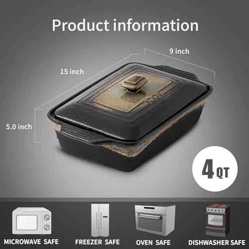 【SAFETY UNDER HIGH TEMPERATURE】: This casserole is made of durable, high temperature stoneware, oven safe to 500°F. It can be used in the oven, microwave, refrigerator and dishwasher. NOTE: No direct fire and induction cooker.
