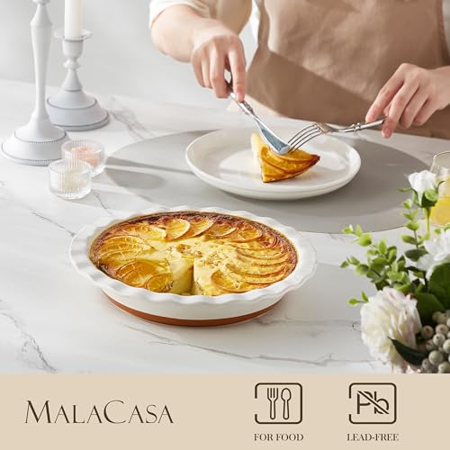 MALACASA Ceramic Pie Pan for Baking – 9 Inch Quiche Baking Dish Nonstick Pie Plate, Deep Dish Scratch-Resistant Pie Pan for Apple Pie Pot Pie, Series TARA