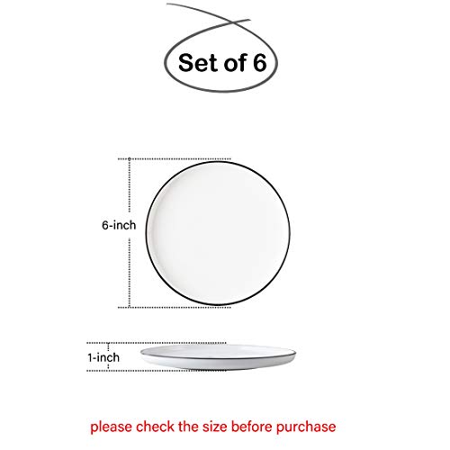 BonNoces 6-inch Small Porcelain Appetizer Plates, White with Black Edges Dinner Side Dishes Serving Plate, Dessert, Salad, Snacks Plate, Set of 6