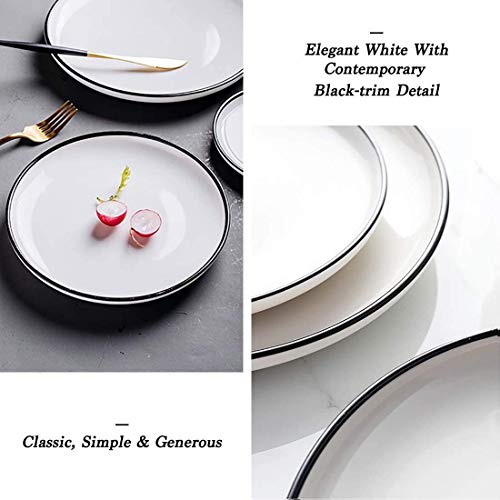 Unique Black Rims Design: Feature elegant white with contemporary black-trim detail. Classic, simple and generous. The round shape is easy to match with other tableware to enhance your table decoration.