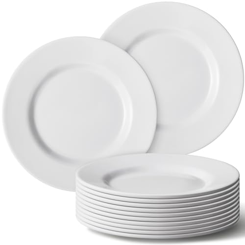 Hushee 12 Pack White Dessert Plates/Salad Dishes Set, Small Dinner Plates for Snacks, Dishes, Round Serving Dishes (7 Inch)