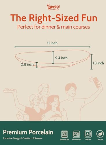 Sweese Porcelain 11 Inch Dinner Plates Set of 6 – White Dinner Plates – Dishwasher, Microwave, Oven Safe, Scratch Resistant