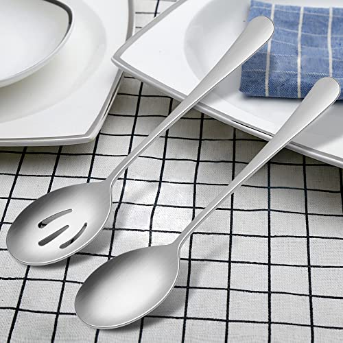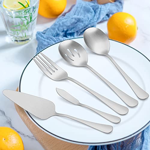 LIANYU 5-Piece Matte Serving Utensils Set, Stainless Steel Serving Set Include Spoon Fork, Flatware Buffet Catering Pieces, Satin Finish, Dishwasher Safe