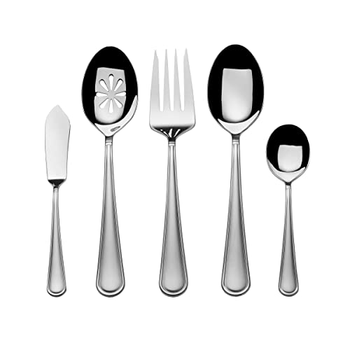 65-PIECE FLATWARE SET: This 65 piece set includes (12) of each: dinner forks, dinner knives, dinner spoons, teaspoons. (1) of each: tablespoon, cold meat fork, pierced tablespoon, sugar spoon, and butter knife.