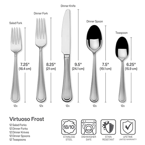 Mikasa, Virtuoso Frost Flatware Service for 12, 65 Piece Set, 18/10 Stainless Steel, Silverware Set with Serving Utensils