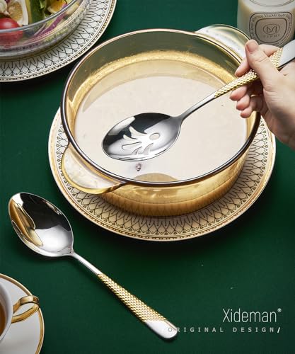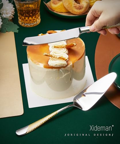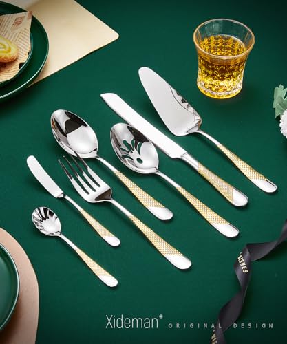Xideman® 7-Piece Hammered 18/10 Stainless Steel Silverware Serving Utensil Set – Hostess Flatware with Cake Knife & Cake Server (Silver Gold)