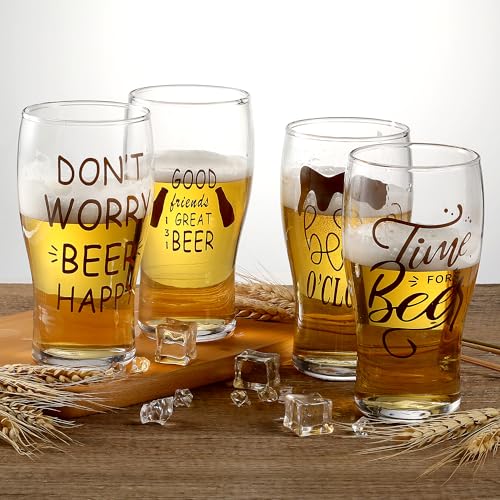 🍻【Ideal Glassware Gifts for Beer Lovers】Our beer glasses set of 4 is elegantly packaged in a beautiful box, making it an excellent glassware gift choice for your dad, boyfriend, or any beer enthusiast. Beyond being ideal for beer lovers, this novelty drinking glass set is also great for housewarming gift, weddings gift, Father’s Day gift, and holiday celebrations gift.Affordably priced for this type of quality, and with a 12 Month Guarantee, they’re an effortless and meaningful gift for anyone who likes to imbibe joy.