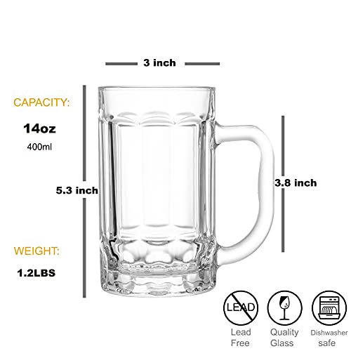 COKTIK 4 Pack Heavy Large Beer Glasses with Handle – 14 Ounce Glass Steins, Classic Beer Mug glasses Set
