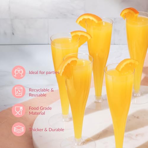 Durable and Reusable: Made from shatterproof plastic; clear plastic champagne flutes can be reused or tossed for easy cleanup; ideal for reducing costs and waste at mimosa bars or large gatherings