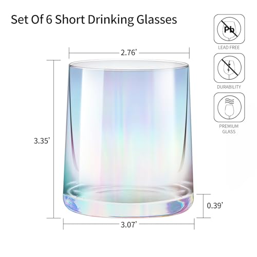 🍸 These cocktail rocks glasses come in sets of 6, each with a capacity of 9.3 oz. The cup opening diameter is 2.76 inch, total cup height is 3.35 inch.