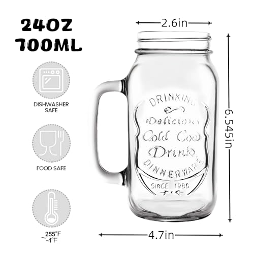 24 OZ Mason Jar Drinking Glasses for Party Beverages Materials and Jars with Comfortable Handle Easy to Clean in the Dishwasher 4Pack
