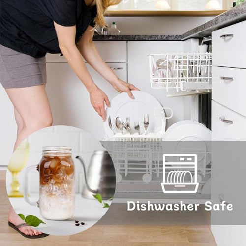 ANOTION Mason Jar with Lid and Straw, 24 oz Regular Mouth Mason Jars with Handle Drinking Glasses Tumbler Reusable Cups Smoothie Water Bottles for Iced Coffee (Classic 2 cups Style)