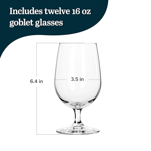 Libbey 7513 Vina Goblet Glasses Set of 12, Clear, 16 Oz, Timeless Short Stem Glasses, Dishwasher Safe Drinking Goblets for Water, Iced Tea, and More