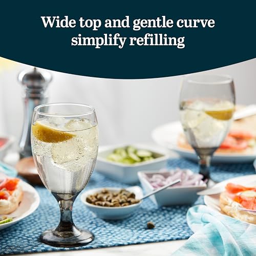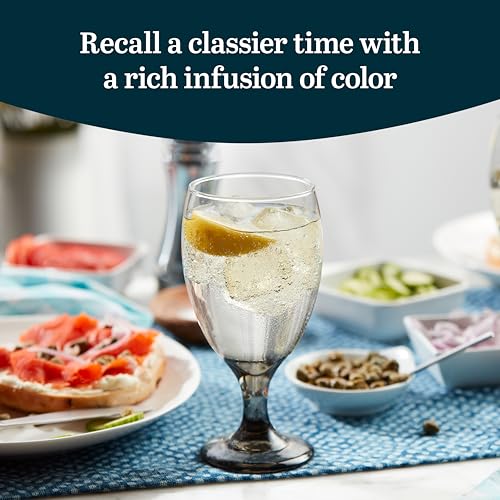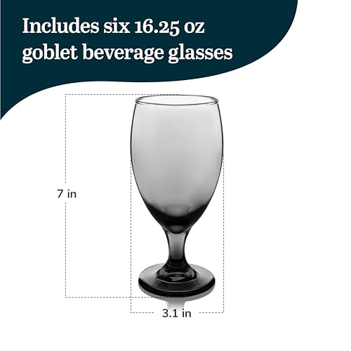 Classic Goblet Glass Set: Recall a classier time with these smoke colored goblet water glasses; the set includes six 16.25-ounce goblet wine glasses with clear lines and infused color, combined for a classic and endured look that will impress guests