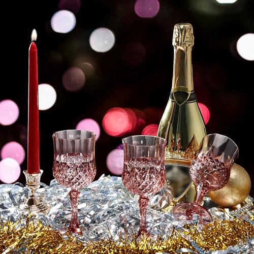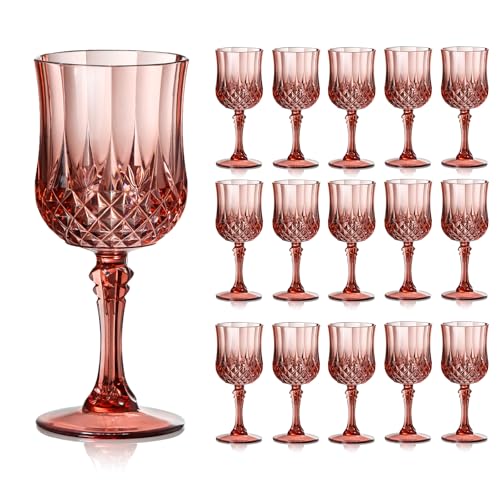 XUWAIDSGN 16 Pcs 7oz Plastic Vintage Wine Glasses Drinking Glasses Unbreakable Wedding Glassware Crystal Water Goblets Reusable Drinkware Vintage Champagne Flutes (16, Rose Gold)