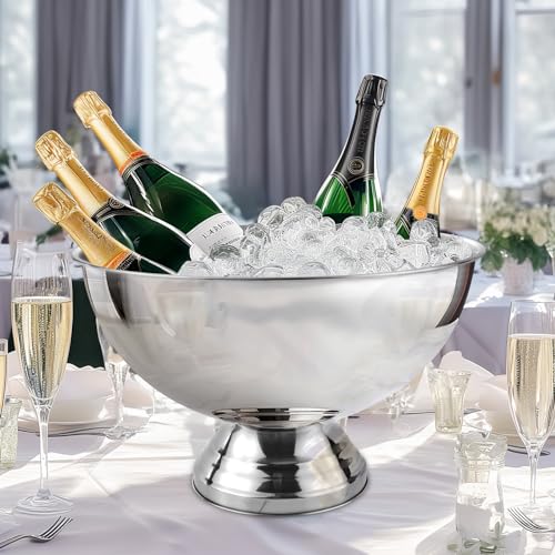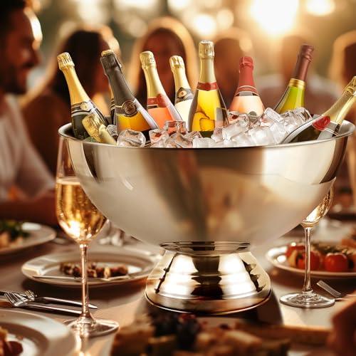 12L Premium Large Size Ice Bucket, Stainless Steel Champagne Bucket for Parties with Great Performance and Sleek Design, Silver, SM-BT-001