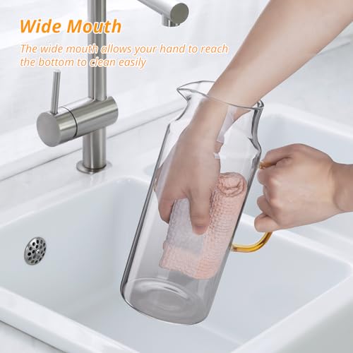 Wide-Mouth Design for Effortless Cleaning: Both the pitcher and its lid are designed for easy cleaning, and it’s dishwasher safe for added convenience. The extra-wide opening allows you to easily reach the bottom, making hand washing a breeze.