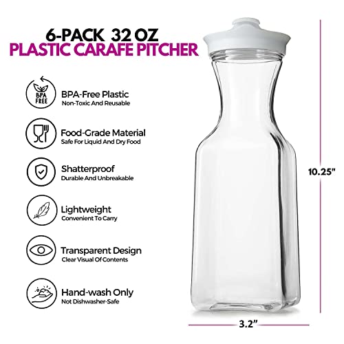 DilaBee Plastic Water Pitcher With Lid – Square Carafe Pitchers for Drinks, Milk, Smoothie, Iced Tea, Mimosa Bar Supplies – BPA-Free – NOT DISHWASHER SAFE (6-Pack, 32 Ounce)