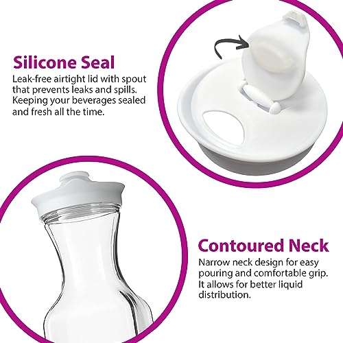 BEAUTIFULLY DESIGNED CARAFES : Made from high-quality BPA-Free plastic juice pitcher with lid that adds sophistication to any occasion and ensures long-lasting use; Its contoured neck offers a secure, comfortable grip and is lightweight, making it easy to pour