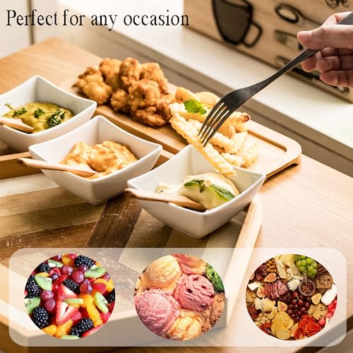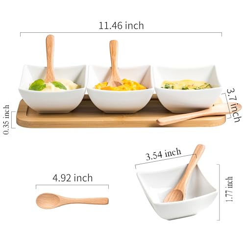 Chip and Dip Serving Set, Ceramic Dipping Sauce Bowls Appetizer Serving Tray with Wooden Spoons, Dip Bowl for BBQ Condiment Snacks