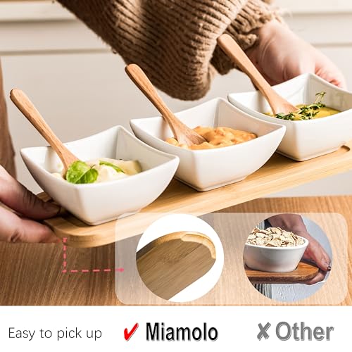 Miamolo dipping sauce bowls boasts a stylish and elegant design that seamlessly complements any table setting. Tri divided small bowls with moderate capacity (Size can refer to pictures), perfect for small gatherings or family dining