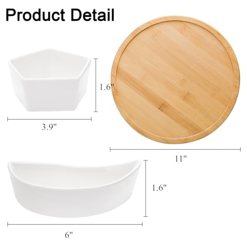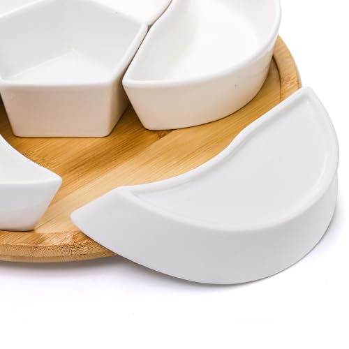 Removable Design: Cididu divided serving tray is equipped with 6 pieces of ceramic bowls and a turntable tray in total. The former can be used cleaned or refilled with food conveniently, and the latter can be adopted as a snack platter or a cheese board separately.