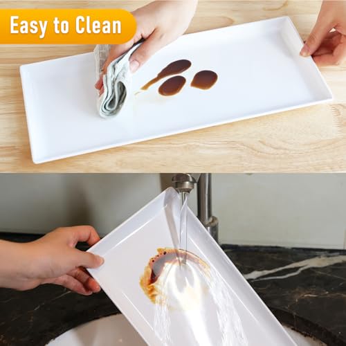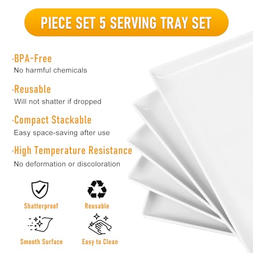 Moretoes 5pcs Melamine White Serving Trays for Party, Reusable Serving Dishes,14.5 x 6,Unbreakable Rectangle Plates, for Cookie, Appetizer, Charcuterie, Snack, Dessert, Food Display