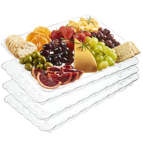 Plasticpro Plastic Serving Trays – Serving Platters Rectangle 9X13 Disposable Party Dish Includes 4 Trays