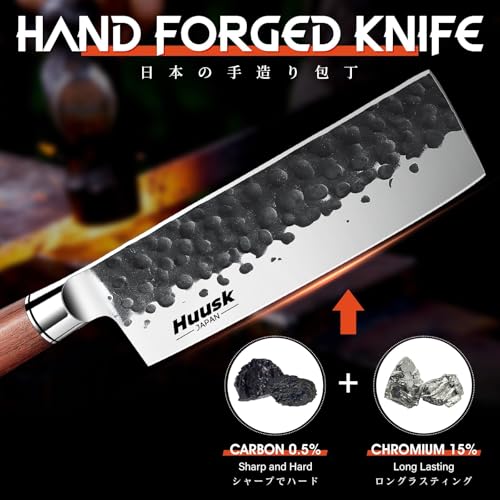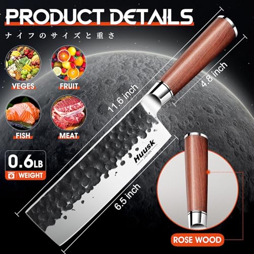 Huusk Japan Nakiri Chef Knife – 6.5 Inch Vegetable Chopping Knife, Multipurpose Japanese Vegetable Cleaver for Kitchen, Hand Forged High Carbon Steel, Ergonomic Rosewood Handle with Gift Box for Dad