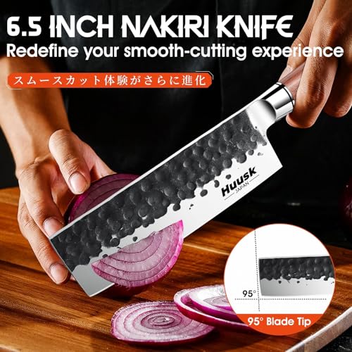 Japanese Vegetable knife: Huusk 6.5 Inch Nakiri knife is perfect for Chopping vegetables. It is a good assistant for chefs or green hands in the kitchen. Start your Japanese kitchen knife collection journey with this professional Japanese chef knife!