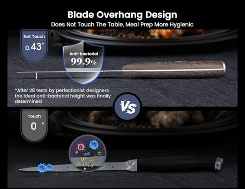 Considering the ordinary boning knife in contact with the table during the prepped meal caused by the stain health hazards and increased cleaning burden, we overturned the traditional deboning knife design after 28 repeated tests and finally determined the 0.43-inch blade suspension height to ensure the health of your and your family