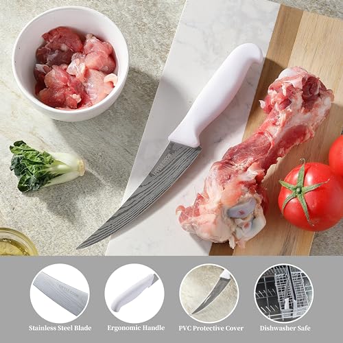 Boning Knife, Little Cook 6-inch Fillet knife, Stainless Steel Blade deboning Knife, Great for Meat Cutting, Fish, Poultry, Chicken (Dishwasher Safe, White)