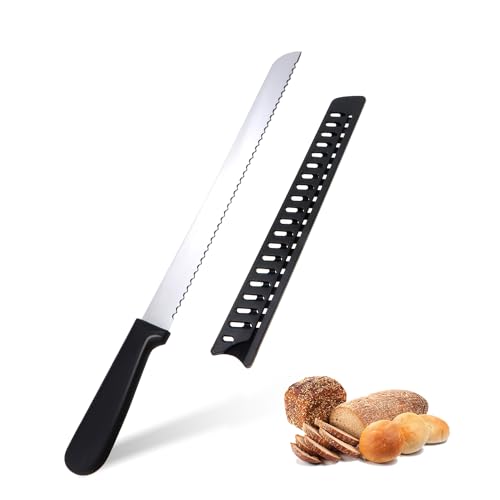 Serrated Bread Knife Wavy Edge with Cover Ultra Sharp for Cutting Pastry 10 Inch Sourdough Slicer