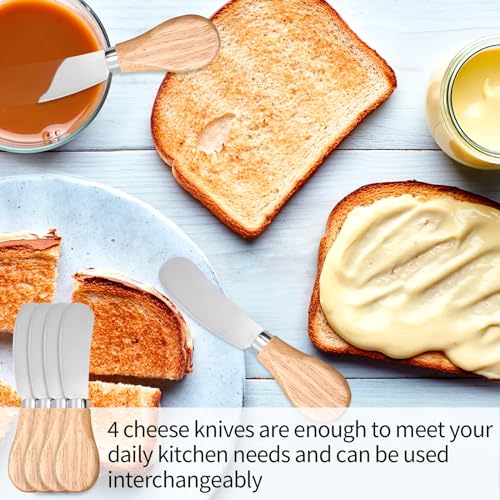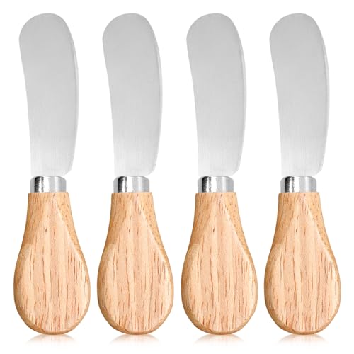 4 Pcs Cheese Spreader Knives Butter Knife with Wooden Handle Stainless Steel Cheese Butter Knife for Cheese Cold Butter Jam Pastry and Other Kitchen Accessories 4.84 Inch