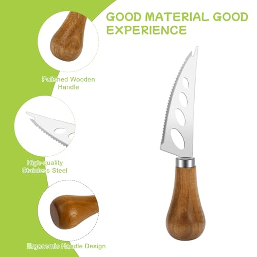 ELEGANT DESIGN: Each cheese knife features a high quality acacia wood handle, healthy, sturdy, and durable, easy to grip. The unique acacia wood handle can be placed upright on the table, reducing the space occupied on the table