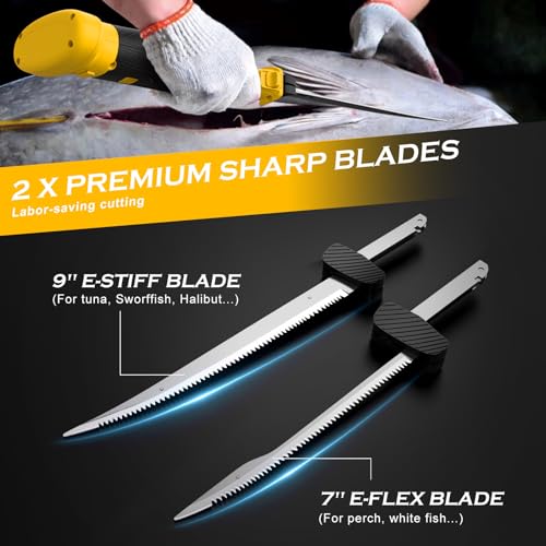Electric Fillet Knife – Cordless, 7″ & 9″ Razor-Sharp Blades, Non-Slip Grip, Safety Lock, 2 Rechargeable Batteries, Storage Case for Fishing, Filleting & Outdoors