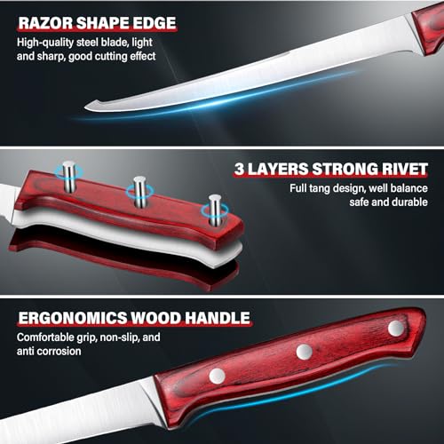Fillet Knife Set, 6 PCS Fish Fillet Knives, High Carbon Steel Filet Knives for Fish Scaling, Boning, Filleting, Fishing Knife Kit with Sharpening Rod and Bag