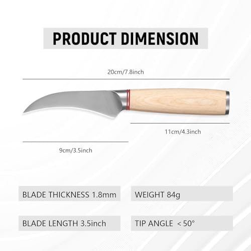 Ergonomic Wood Handle: Our paring knife wood handle provides a comfortable and secure grip for precise cutting control. The knife boasts a sleek and ergonomic design for precise and comfortable cutting.