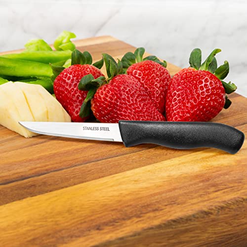 Paring and Garnishing Knife, 12-Piece Set, Knives with Straight Edge 3 Inch Blade, Stainless Steel, Spear Point, Fruit and Vegetable Cutting and Peeling, Black