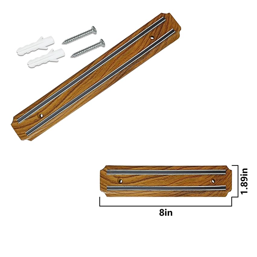 8 Inch 2 Pack Wood grain Powerful Magnetic Knife Holder, Kitchen Knife Magnetic Strip Strips, Rust Free Multipurpose Magnetic Knife Rack Use for Kitchen Garage Workshop