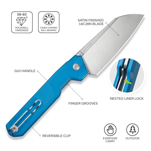 CIVIVI Hid Folding Pocket Knife, 4.14″ Swedish 14C28N Blade G10 Handle Nested Liner Lock Kitchen Knife with Thumb Stud Opener, Ideal for Outdoor Use Camping Hiking and EDC C23008-5, Blue