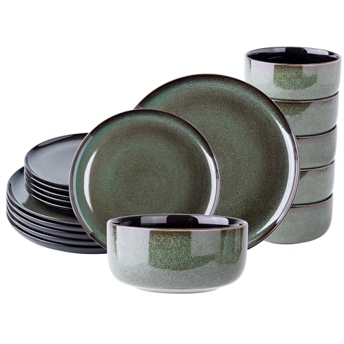 LeRatio Ceramic Dinnerware Sets for 6,Porcelain Plates and Bowls Sets,Handmade Reactive Glaze Dishes Set,Chip Resistant and Scratch Resistant | Oven&Dishwasher & Microwave Safe-Green(18PCS)