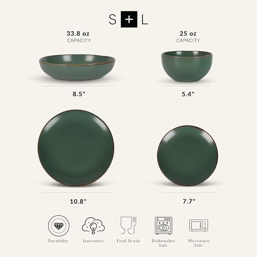 Stone Lain Brasa Modern Stoneware 16 Piece Dinnerware Sets, Plates and Bowls Sets, Dish Set for 4, Green