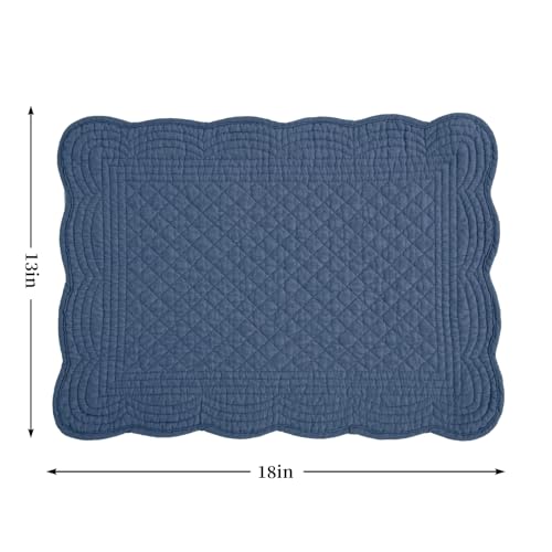 HOMBYS Quilted Placemats Set of 6 Washable-13×18 inches Rectangular Placemats for Kitchen Table-100% Cotton Fabric Rectangular Table Mats, (Sapphire Blue)