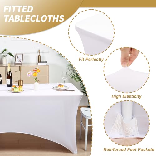 Fixwal 3 Pack White Table Cloths Rectangle 6FT, Tablecloths Rectangular Stretch Spandex Fitted Table Covers 6 ft for Parties, Trade Shows, Banquet, Weddings, Buffet, Graduation Decorations