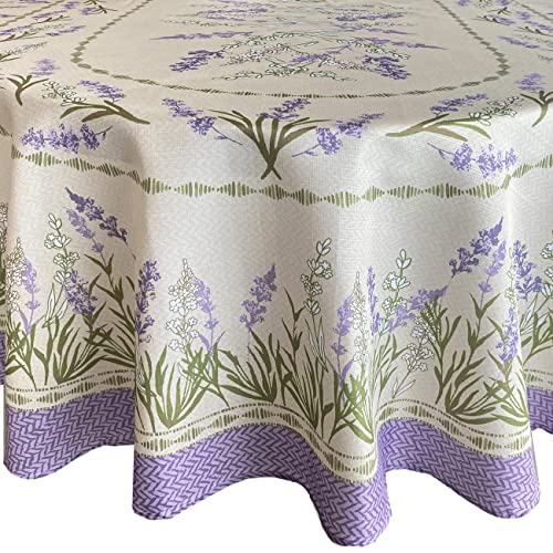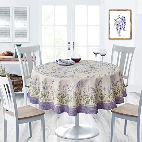 Home Bargains Plus Provence Round Tablecloth, 70 Inch, Holiday Blanchard Field of Lilacs, Wrinkle and Stain Resistant Fabric Table Cover for Dinner Parties and Banquet
