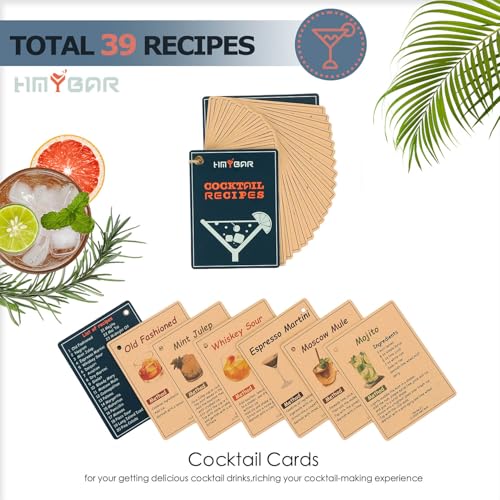22-pc Cocktail Shaker Set(24oz/700ml) | Mixology Bartender Kit | Bar Set | Bar Tool Set | Martini Making Set with 39-Recipe Cocktail Cards & Kit’s Deco, Bamboo Stand Black Color, Silver Tools