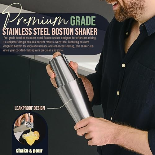 Effortless Mixing – Shake with confidence using a shaker designed for balance and precision. This shaker from our cocktail kit features an extra-weighted bottom to enhance durability and streamline your cocktail-making process.
