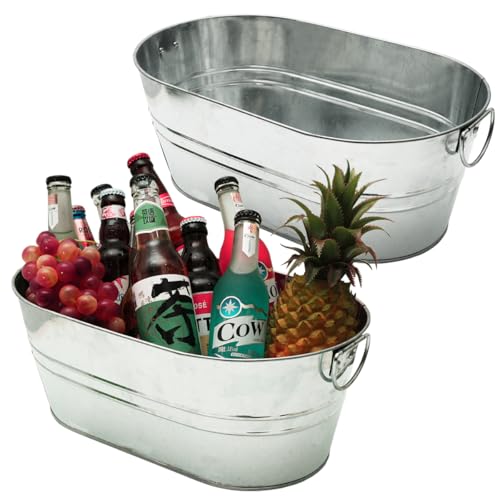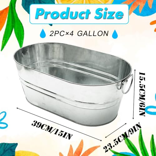 2 Pack Galvanized Tub 4 Gallon Ice Bucket with Handle Large Metal Drink Buckets for Parties Beer Beverage Tub with Carry Handles for Champagne Cocktails Wine Cooling for Mimosa Bar Supplies
