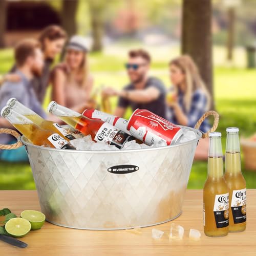 【 STYLISH DESIGN 】 The beverage tub makes use of high-quality galvanized rust-proof metal, sturdy and durable, with excellent rust-proof performance. With a retro and stylish design the ice bucket adds a unique touch to your party and enhances the overall style and ambiance.